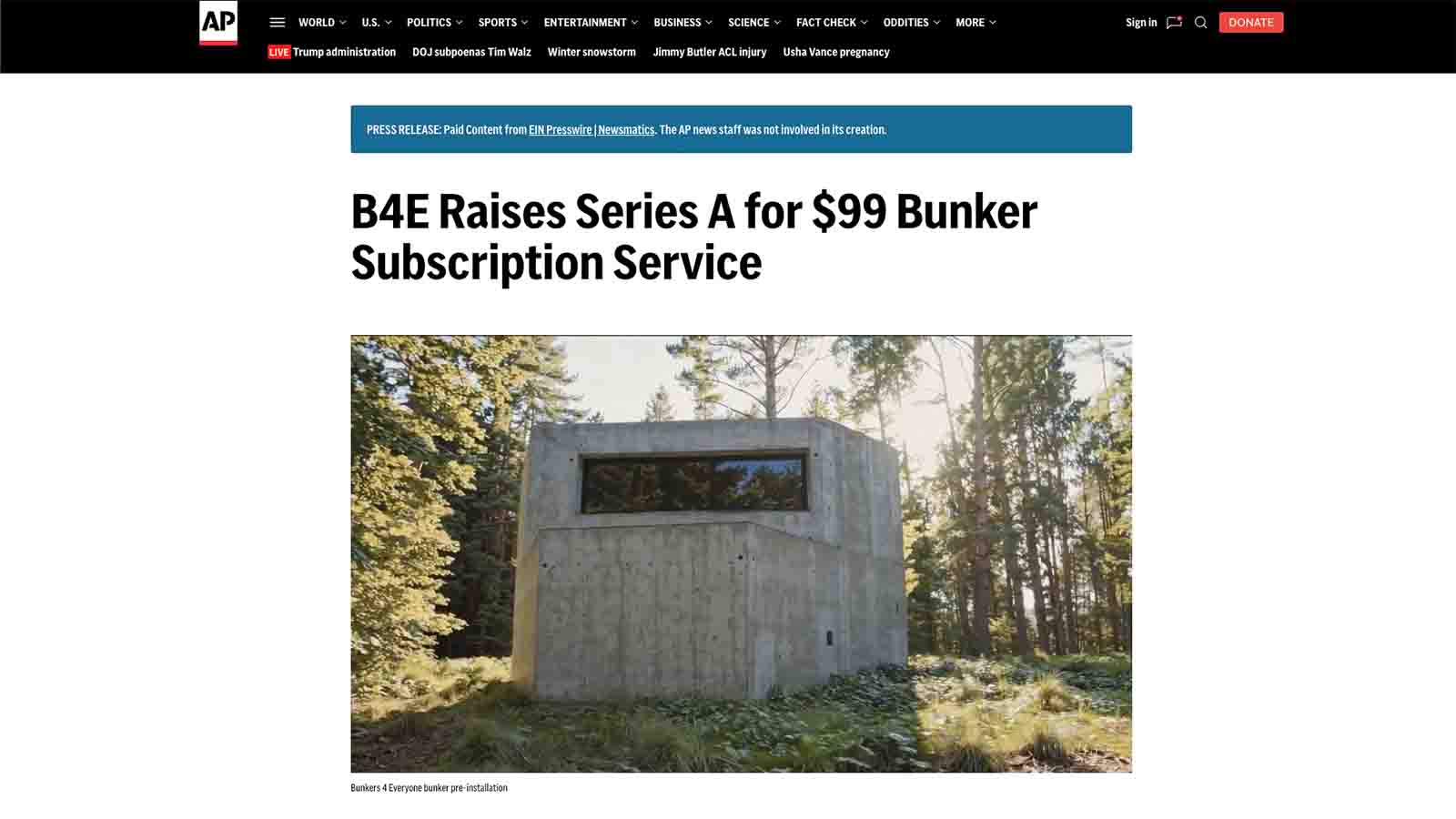 Press releases are like a grocery store manager giving herself employee of the month and then using that as evidence to Corporate that she deserves a raise. They’re bullshit, and years of working for Big Business and small parts of Poland helped us engineer a press release that was scandalously perfect: A $99/month subscription for a bunker, AI security, a Swedish trash-based perpetual energy system, low CO2, permeable concrete, and a $52 Million Series A, because nothing says real like an arbitrary seven-digit number.